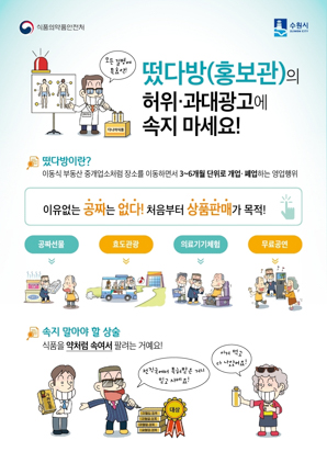 수원시 관계자는 “고령층은 허위·과대 광고에 노출되기 쉬운 만큼, 실질적인 예방 교육과 정보 제공이 중요하다”며 “노인들이 안전하게 식품을 선택하고 떴다방으로 인한 피해를 사전에 막을 수 있도록 지속해서 홍보·점검하겠다”고 말했다.