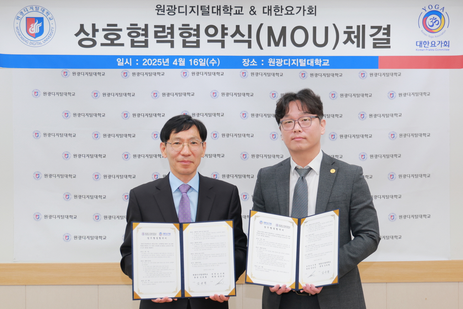 (경기=NSP통신) 김여울 기자 = 원광디지털대(총장 김윤철)는 16일 서울캠퍼스에서 사단법인 대한요가회(회장 강승진)와 요가 분야의 교육협력 강화를 위한 단체협약(MOU)을 체결했다.