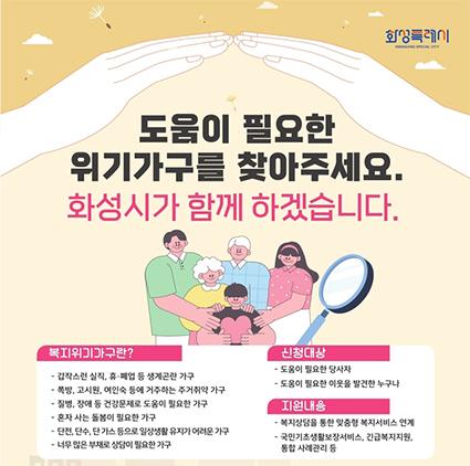 (경기=NSP통신) 조현철 기자 = 경기 화성시(시장 정명근)가 복지사각지대에 놓인 위기가구를 조기에 발굴하고 지원하기 위해 시민 참여를 유도하는 홍보 포스터를 제작·배포하며 복지안전망 강화에 나섰다.