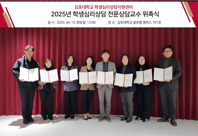 김포대학교 조휘형 미래인재센터장, 현정희 학생심리상담지원센터장을 포함한 8명의 전문상담교수들은 진로 및 심리상담 분야에서 높은 전문성과 다년간의 경험을 통해 높은 자격을 보유한 전문가들로, 학생들에게 맞춤형 진로상담과 심리상담 서비스를 제공하며 상담서비스의 자문 역할도 맡게 된다.