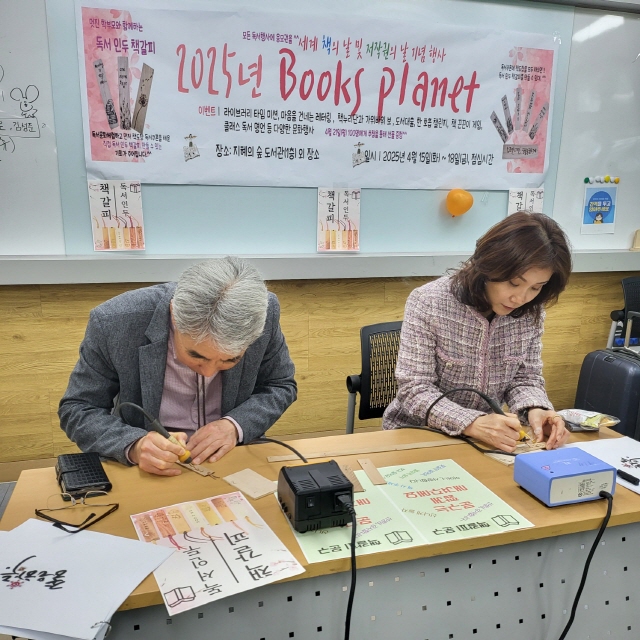 이번 행사는 전교생과 교직원을 대상으로 점심시간에 지혜의 숲 도서관에서 ▲라이브러리 타임 미션 ▲마음을 건네는 레터링 ▲한 호흡챌린지 ▲책 끈끈이 게임등으로 구성됐고 참여하는 사람에게 나만의 독서 인두 책갈피를 만들 수 있는 기회를 제공했다