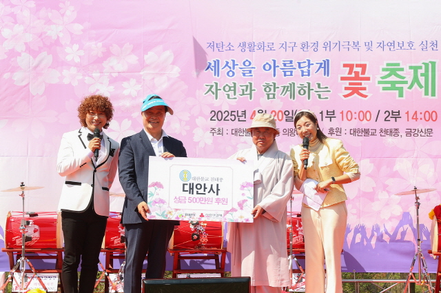 (경기=NSP통신) 김해종 기자 = 대한불교 천태종 대안사(주지 효성스님)는 20일 열린 대안사 꽃 축제에서 소외계층 이웃을 위한 성금 500만원을 경기 의왕시(시장 김성제)에 전달했다.