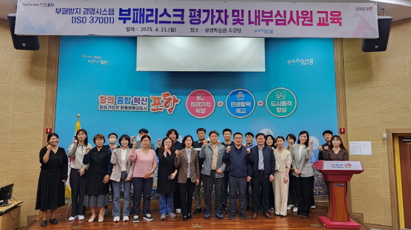 (경북=NSP통신) 조인호 기자 = 포항시는 21일 평생학습원 소강당에서 ‘2025년 부패방지 경영시스템’ 사후 심사를 대비한 부패리스크 평가자 및 내부심사원 교육을 실시했다.