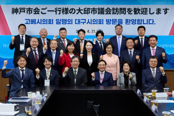 (경북=NSP통신) 김대원 기자 = 대구광역시의회(의장 이만규)는 21일 시의회 2층 회의실에서 고베시의회 대표단 환영 간담회를 개최하고 양 도시의 지속적인 교류 협력을 약속했다.