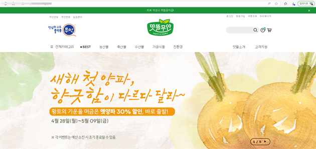 오는 28일부터 다음달 9일까지 진행되는 ‘햇양파 할인전’에서는 맛과 품질이 뛰어난 무안 햇양파를 30% 할인된 가격에 만나볼 수 있다.