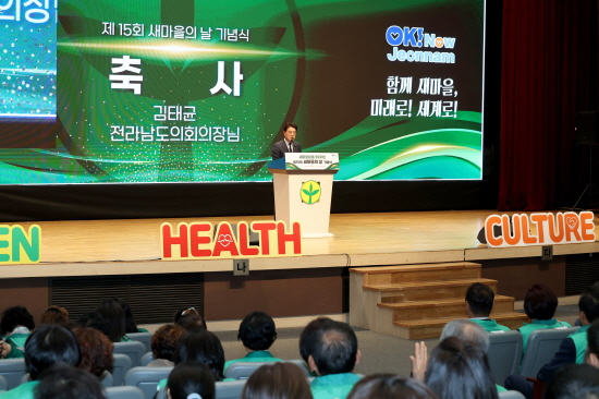 (전남=NSP통신) 김성철 기자 = 김태균 전라남도의회 의장은 전남도청 김대중 강당에서 개최된 제15회 새마을의 날 기념식에 참석해 유공자 표창 수여와 함께 “새마을정신의 숭고한 가치를 되새기고 널리 이어가는 계기가 되길 바란다”고 밝혔다.