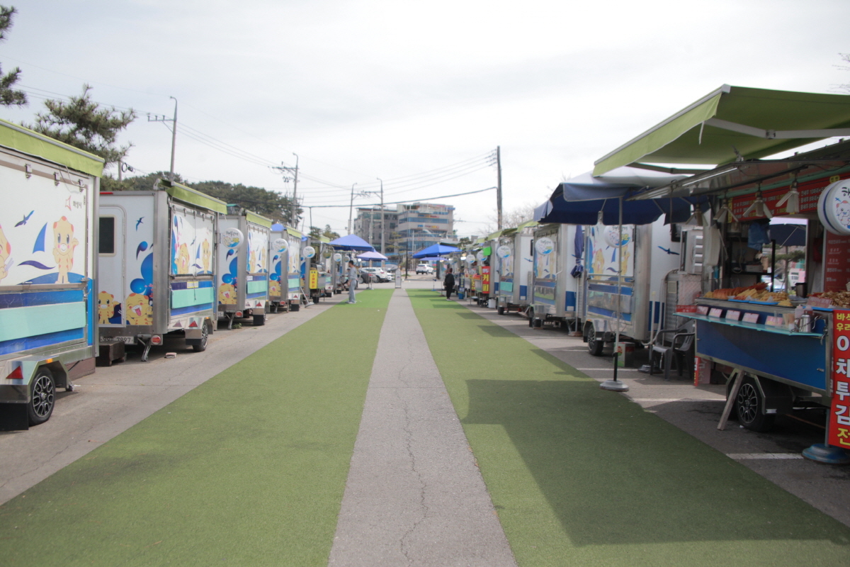 NSP통신-화성시 서신면에 위치한 궁평항 주차장에 설치된 궁평항 먹거리 행복장터 푸드 트레일러 모습. (사진 = 김종식 기자)