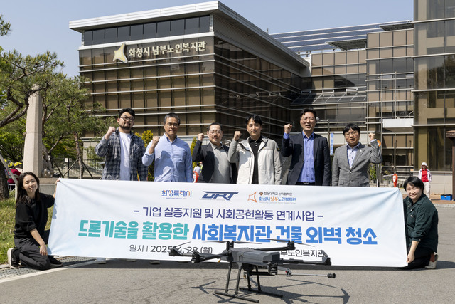 이번 실증활동에서 디알티는 화성시남부노인복지관을 방문해 자사가 개발한 외벽 청소용 드론의 작동 방식과 청소 과정을 시연하고 실제로 복지관 정면 유리창 청소를 실시하며 기술의 실효성을 입증했다.
