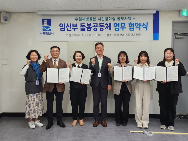 시는 29일 수원시 아동학대 공동대응센터에서 ‘수원새빛돌봄 임신부 돌봄공동체 지원사업’ 선정기관 ▲광교종합사회복지관 ▲수원YWCA ▲수원시건강가정지원센터 ▲수원시사회적기업협의회 ▲영통종합사회복지관 등 5개소와 협약을 체결했다.