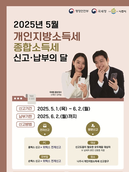 (전남=NSP통신) 김용재 기자 = 나주시(시장 윤병태)가 오는 6월 2일까지 2024년 귀속 종합소득세와 개인지방소득세 확정신고 기간을 운영한다.