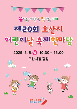 (경기=NSP통신) 조현철 기자 = 경기 오산시(시장 이권재)가 5월 5일 어린이날을 맞아 ‘꿈꾸는 어린이, 빛나는 미래’라는 주제로 제20회 오산시 어린이날 축제 한마당을 개최한다.
