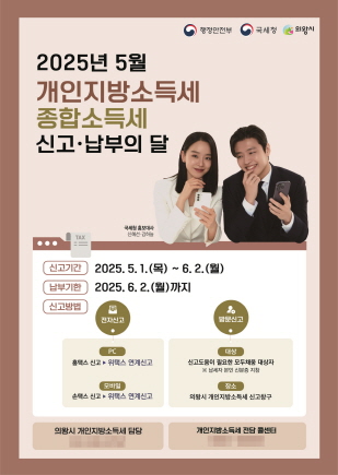 (경기=NSP통신) 김해종 기자 = 경기 의왕시(시장 김성제)는 시민들의 ‘2024년 귀속 개인지방소득세(종합소득세)의 신고와 납부’를 독려하고 나섰다.