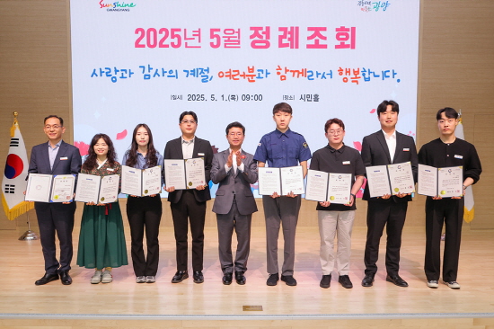 정례조회에서는 전라남도 현장행정 우수 읍·면·동 ‘대상’에 선정된 광양읍에 대한 기관 표창과 시정 발전 유공 직원 8명에 대한 표창장 수여가 진행됐다. 표창 수여 후에는 정인화 시장이 주요 당부사항을 전달하며 현안 대응을 당부했다.