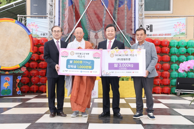 (경기=NSP통신) 김해종 기자 = 경기 의왕시(시장 김성제)의 자비나눔실천도량 대한불교조계종 백운사(주지 법진스님)가 지난 5일 부처님 오신 날을 맞아 장학금 1000만원과 쌀 600포를 기탁했다.