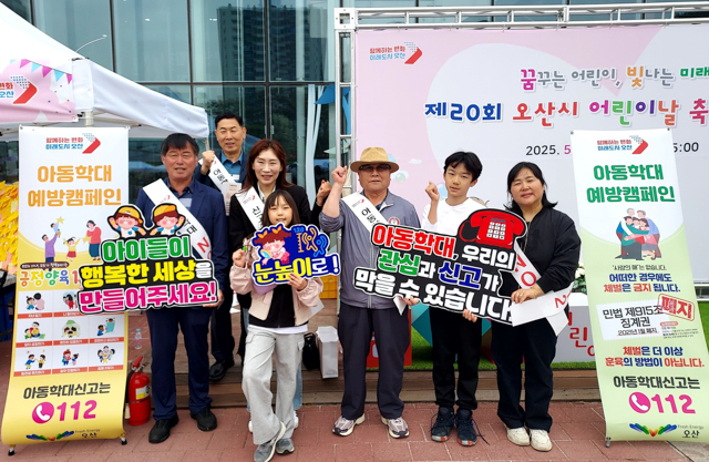 이번 캠페인은 오산경찰서 오산시아동보호전문기관과 오산시 아동위원협의회 및 오산시 아동보호팀이 연합으로 진행됐으며 어린이날 행사에 참여한 오산시민들을 대상으로 아동학대 인식개선 및 예방을 위한 홍보, 신고요령 등을 안내했다.
