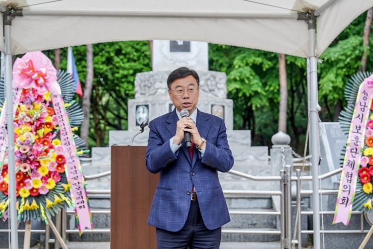 이날 비가 내리는 궂은 날씨에도 불구하고 신상진 성남시장을 비롯해 시의원 및 경기도지부장 등 주요 인사와 400여 명의 참전용사와 가족들이 참석했다.
