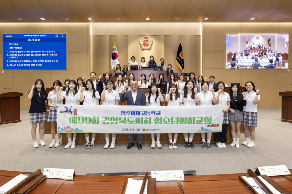 (경북=NSP통신) 조인호 기자 = 경상북도의회는 9일 도의회 본회의장에서 상주여자고등학생 28명이 참여한 가운데 ‘제99회 경상북도의회 청소년의회교실’을 개최했다.