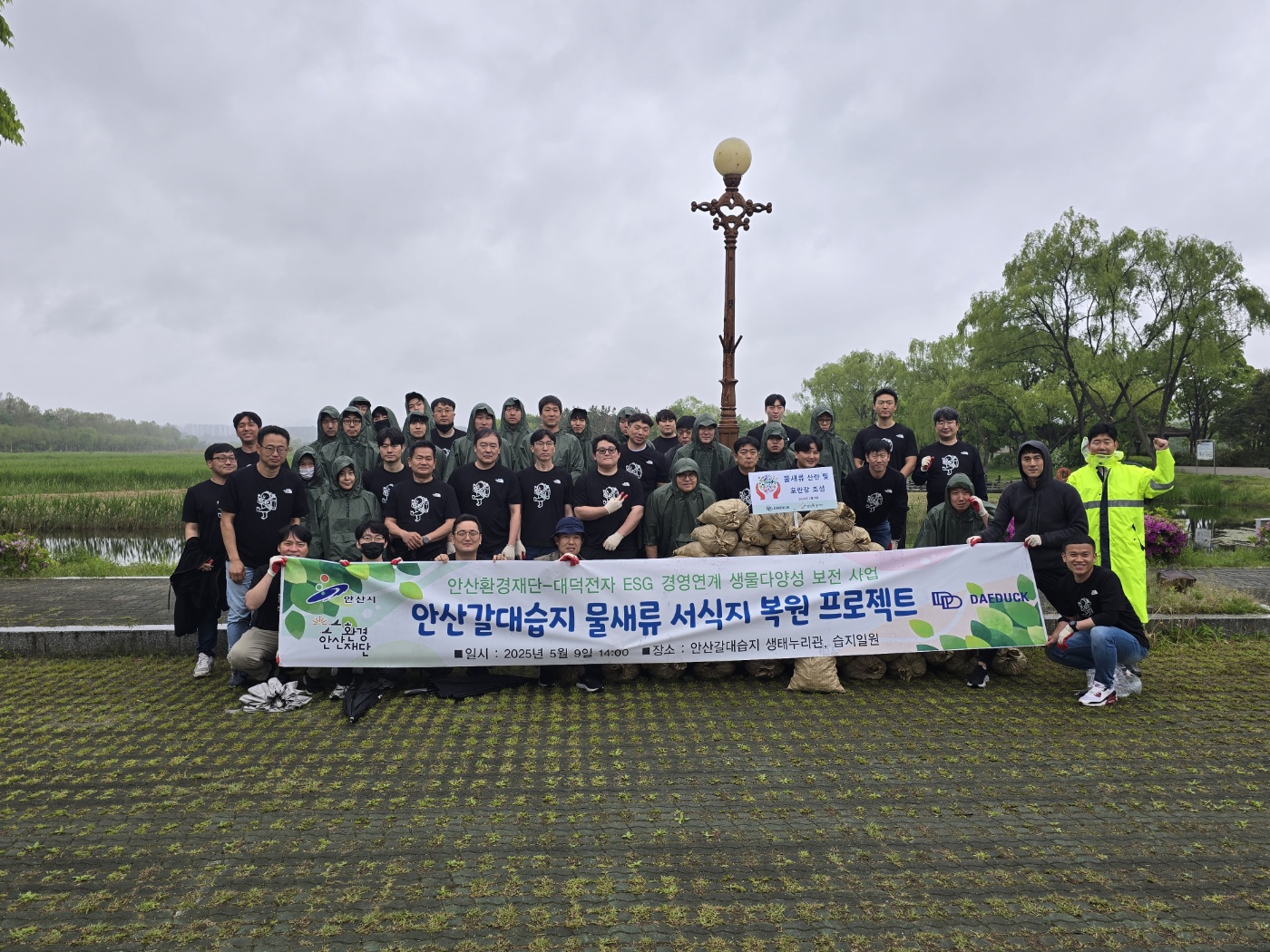 현장에는 신영환 대덕전자 대표를 비롯한 임직원 50여 명과 안산환경재단, 안산시 관계자 10여 명이 참여해 기업과 공공기관이 함께 지역 생태계 보전에 나서는 뜻깊은 시간을 가졌다.
