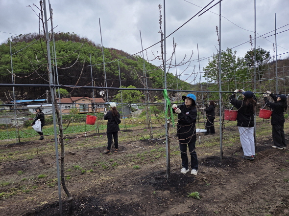 지난 10일 직원 20여 명은 관내 산불피해 지역인 풍천면 어담리 소재 과수원에서 영농봉사 활동을 펼쳤다.