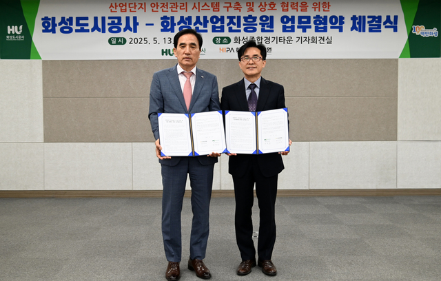 (경기=NSP통신) 조현철 기자 = 경기 화성도시공사(사장 한병홍, HU공사)가 13일 화성산업진흥원과 산업단지 내 입주기업의 안전사고 예방을 위한 상호협력 업무협약(MOU)을 체결했다.