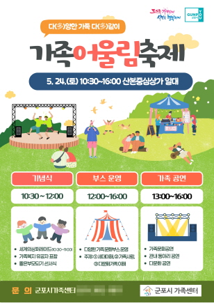(경기=NSP통신) 정희순 기자 = 경기 군포시(시장 하은호)는 ‘가정의 날과 세계인의 날’을 기념해 24일 산본로데오거리에서 ‘다(多)양한 가족 다(多)같이 가족어울림축제’를 개최한다.