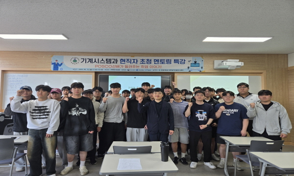 이날 진행한 프로그램에서는 포항대학교 기계시스템과 졸업생이자 현재 POSCO 냉연부 및 크레인 정비 섹션에서 근무 중인 선배가 멘토로 참여해 현장의 생생한 경험을 바탕으로 실무 중심의 진로 멘토링을 제공했다.