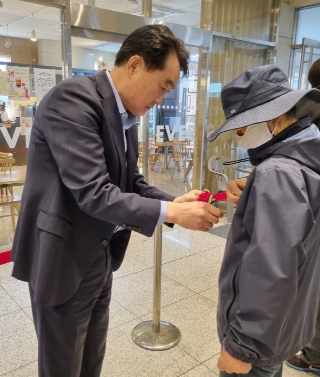 이어 8일에는 군포시 하은호 시장, 군포시늘푸른노인복지관 길재경 관장이 카네이션을 직접 달아드리며 ‘특별한 어버이날~ 더 행복하세요! 감사하고 사랑합니다~’라는 의미를 전했다.