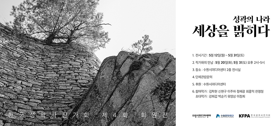(경기=NSP통신) 조현철 기자 = 경기 수원문화재단(대표 오영균)이 수원시미디어센터 2층 전시실에서 오는 31일까지 ‘성곽의 나라, 세상을 밝히다’라는 주제로 한국성곽사진가회 제4회 회원전을 연다.