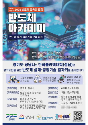 (경기=NSP통신) 김병관 기자 = 경기 성남시(시장 신상진)는 6월 5일까지 ‘2025년 반도체 설계·공정기술 아카데미’ 교육생을 모집한다.