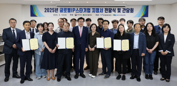 (경북=NSP통신) 김대원 기자 = 대구상공회의소 대구지식재산센터는 지난 14일 ‘2025년 글로벌IP스타기업 지정서 전달 및 간담회’를 개최하고 올해 신규로 선정된 13개사에 지정서를 전달했다.