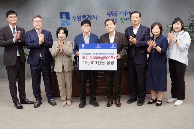(경기=NSP통신) 조현철 기자 = 경기 수원시(시장 이재준)에 15일 자생의료재단이 “도움이 필요한 아동들에게 힘이 되고 싶다”며 10kg 백미 500포(1500만원 상당)를 기부했다.