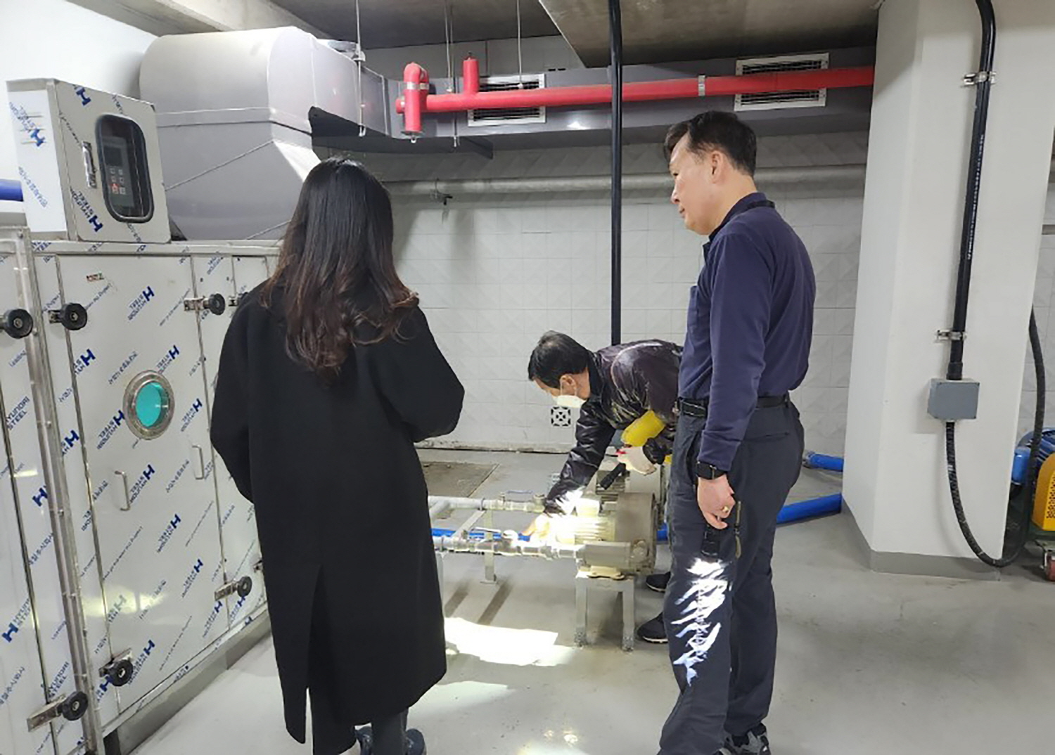 점검반(3명)이 각 시설이 설치된 상가, 아파트 등의 건물을 찾아가 악취저감시설인 공기공급장치가 제대로 설치돼 있는지와 정상 작동 여부, 청소 상태를 살핀다.