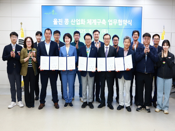 (경북=NSP통신) 김대원 기자 = 울진군(군수 손병복)은 지난 15일 경상북도농업기술원, 주식회사 다원, 울진유통농업회사법인, 농업회사법인 행복농촌만들기와 울진 콩 산업화 체계구축을 위한 업무협약을 체결했다.