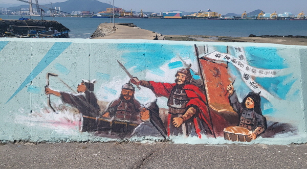 역사적으로 중요한 해전의 배경이 되었던 이 마을 방파제가 벽화로 변신한 것. 마을 이름도 ‘도독’이라는 진린의 직함에서 비롯됐다.