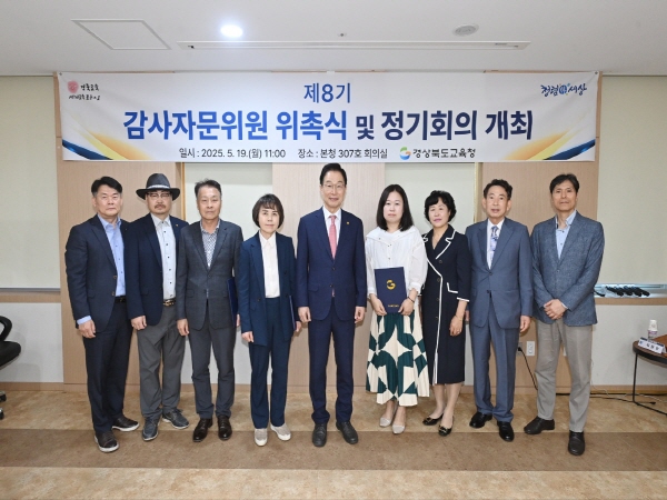 (경북=NSP통신) 조인호 기자 = 경상북도교육청(교육감 임종식)은 19일 본청 307호 회의실에서 감사 행정의 공정성과 전문성을 높이기 위한 제8기 감사자문위원회 위촉식을 개최하고 제1회 정기회의를 열었다고 밝혔다.