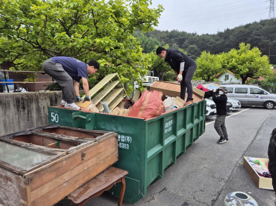 광양 옥룡면, 저장강박 장애인 가정 찾아 청소 봉사활동 실시