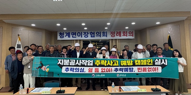 20일 군에 따르면 이날 캠페인에는 청계면 이장협의회(단장 박정수)와 청계농협(조합장 이요진) 관계자들이 참석했으며, 군은 마을 이장들에게 중대재해의 위험성과 예방법을 적극적으로 주민들에게 홍보할 것을 당부했다.