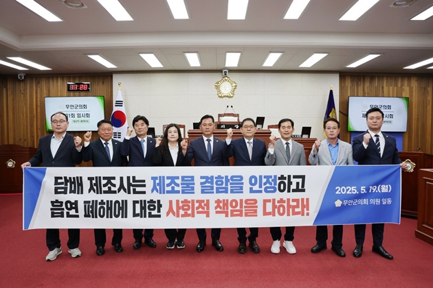 (전남=NSP통신) 오환주 기자 = 무안군의회(의장 이호성)가 흡연으로 인한 사회적 폐해에 대한 담배 제조사의 적극적인 사회적 책임 이행을 촉구하고 나섰다.