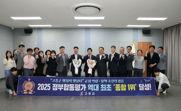 전라남도가 지난 12일 발표한 ‘2025년 정부합동평가(2024년 실적)’ 결과에 따르면 고흥군은 전남 22개 시군 가운데 종합 1위를 차지하며 최초로 정상에 올랐다.