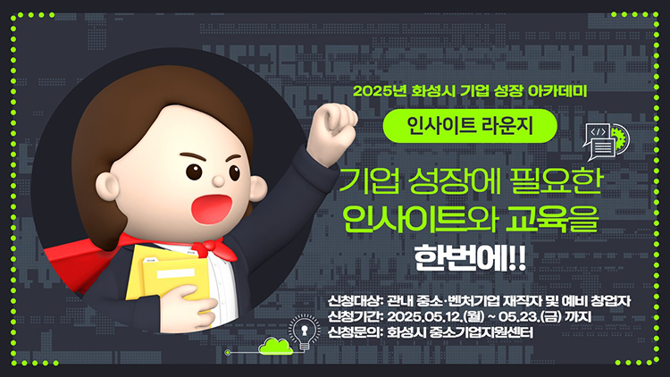(경기=NSP통신) 조현철 기자 = 경기 화성산업진흥원(원장 전병선)이 오는 23일까지 ‘2025년 화성시 기업 성장 아카데미 인사이트 라운지’의 교육생을 모집한다.