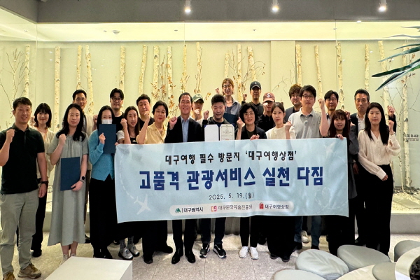 강성길 문예진흥원 관광본부장은 “이번 서약식은 관광기업이 주체적으로 서비스 혁신에 나서는 첫걸음”이라며 “향후 대구 관광산업의 품질과 만족도를 끌어올리는 핵심 계기가 될 것”이라고 말했다.