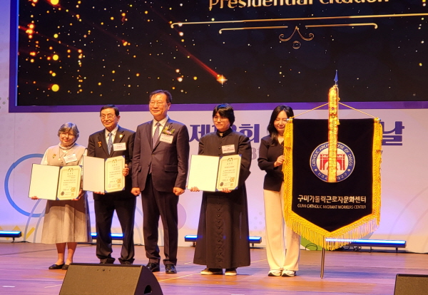 지난 20일 과천시민회관 대극장에서 열린 제18회 세계인의 날 기념식에서 구미가톨릭근로자문화센터(센터장 송양업 신부)가 대통령 표창을, 구미제일외국인상담센터(센터장 전희식)가 행정안전부 장관 표창을 수상했다.