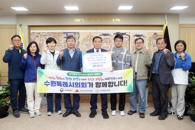 이재식 수원시의회 의장은 “인구문제는 우리 사회가 직면한 가장 시급한 과제 중 하나로 단순히 출산율만의 문제가 아니라 교육, 주거, 돌봄 등 삶의 전반에 걸친 구조적 개선이 필요한 사안”이라며 “시의회도 다양한 세대가 행복하게 살아갈 수 있는 정책적 기반 마련에 더욱 힘쓰겠다”고 말했다.