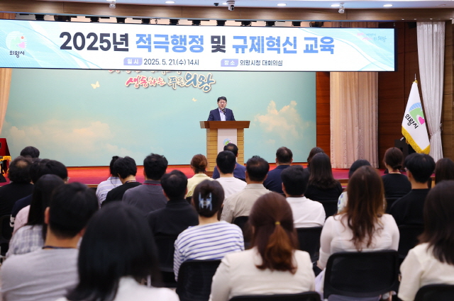 (경기=NSP통신) 김해종 기자 = 경기 의왕시(시장 김성제)는 21일 시청 대회의실에서 전 직원을 대상으로 ‘2025년 적극행정 및 규제혁신 역량 강화 직원 교육’을 실시했다.
