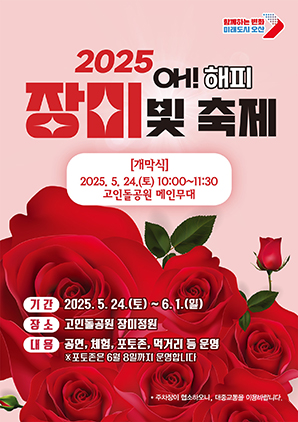 개막식은 24일 오전 10시 공연과 함께 시작된다. 축제장을 찾은 시민들은 다채로운 장미 포토존에서 추억을 남기고 체험부스와 플리마켓, 먹거리존에서 소소한 즐거움을 만날 수 있다.