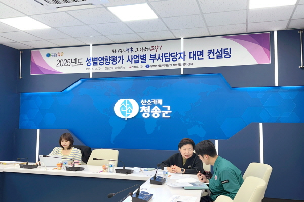 윤경희 청송군수는 “이번 전문 컨설팅을 통해 사업 담당자들의 성별영향평가에 대한 이해가 높아져 실질적인 업무에 도움이 되길 바라며 각 사업에도 성인지 관점이 적극 반영되길 기대한다”고 전했다.