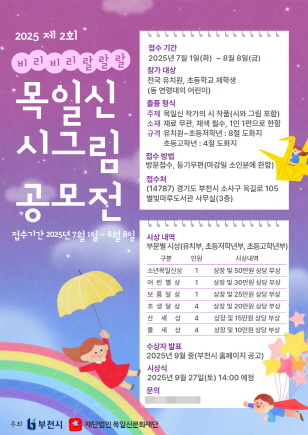 (경기=NSP통신) 김여울 기자 = 경기 부천시(시장 조용익)는 재단법인 목일신문화재단(이사장 양재수)과 함께 ‘2025년 제2회 목일신 시그림 공모전’을 개최한다.