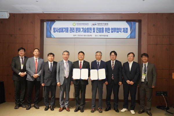 (경북=NSP통신) 조인호 기자 = 한국원자력환경공단(이사장 조성돈)은 지난 21일부터 22일까지 제주에서 제주대학교(총장 김일환), 대한전기협회(상근부회장 노용호)와 방사성폐기물 관리, 처분, 기술표준 강화를 위한 업무협약(MOU)을 각각 체결했다.