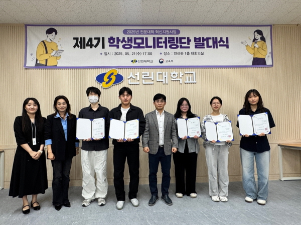 (경북=NSP통신) 조인호 기자 = 포항 선린대학교(곽진환 총장)는 지난 21일 인산관 1층 대회의실에서 전문대학 혁신지원사업 프로그램의 참여 활성화와 성과 지속 및 확산을 위해 2025학년도 제4기 학생모니터링단 발대식 및 오리엔테이션을 개최했다.