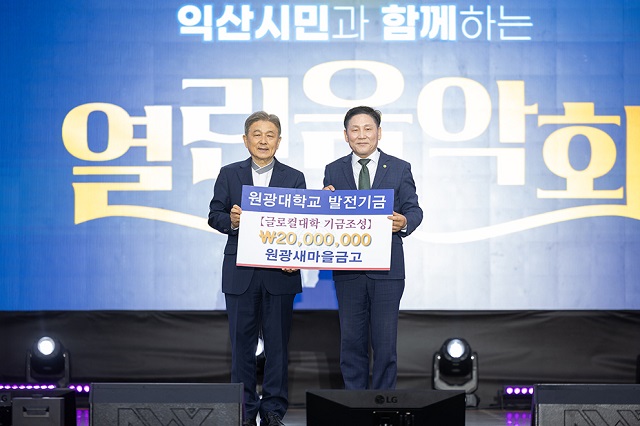 원광새마을금고는 음악회 1부 행사에서 원광대의 글로컬대학 선정을 축하하고 성공적인 사업 추진을 통한 지역 인재 양성을 기원하며 발전기금을 전달했다.